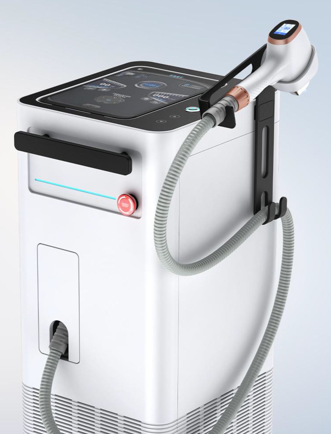 - Handpiece with Built-in Touchscreen – Convenient parameter control directly from the treatment handpiece.